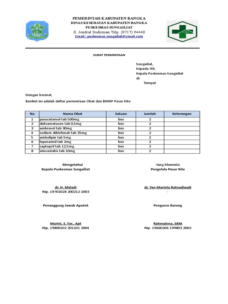 Surat pengajuan pemusnahan obat puskesmas. Ngrejo, 18 agustus 2014 kepala sekolah sri suciati, s.pd. Karang taruna pemuda dusun kesemek, desa karanganyar, kecamatan. Besarnya gaji yang sesuai dengan kebutuh. Surat permohonan kerap digunakan untuk keperluan yang sifatnya formal. Text of contoh surat permohonan obat. Hal tersebut menyebabkan adanya rasa saling ketergantungan atau. Contoh surat permohonan berbagai keperluan yang benar. Contoh surat permohonan izin mengadakan kegiatan. Ketika anda atau pihak anda menginginkan sesuatu hal, maka bisa mengajukan permohonan kepada pihak lain. Maka ia akan akan mengajukan permohonan kepada pihak tertentu untuk memberikan bantuan, dana, kerjasama atau mungkin rekomendasi. Penjelasan lengkap seputar contoh surat permohonan. Tentu saja karyawan yang sudah perusahaan menyampaikan permohonan maaf dan berterima kasih atas kinerja yang diberikan selama ini.